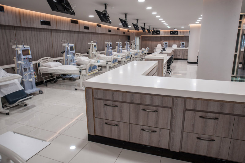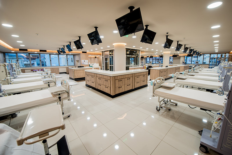 Η Μονάδα μας παρέχει όλες τις σύγχρονες μεθόδους υποκατάστασης της νεφρικής λειτουργίας τόσο κλασσική αιμοκάθαρση όσο και On-Line αιμοδιαδιήθηση. Για την εφαρμογή αυτών των θεραπειών χρησιμοποιούνται 45 υπερσύγχρονα μηχανήματα αιμοκάθαρσης τελευταίας τεχνολογίας, τα οποία υποστηρίζονται από εκτεταμένη μονάδα – εντός των εγκαταστάσεων -επεξεργασίας και κεκαθαρμού ύδατος σύμφωνα με τις διεθνείς προδιαγραφές.